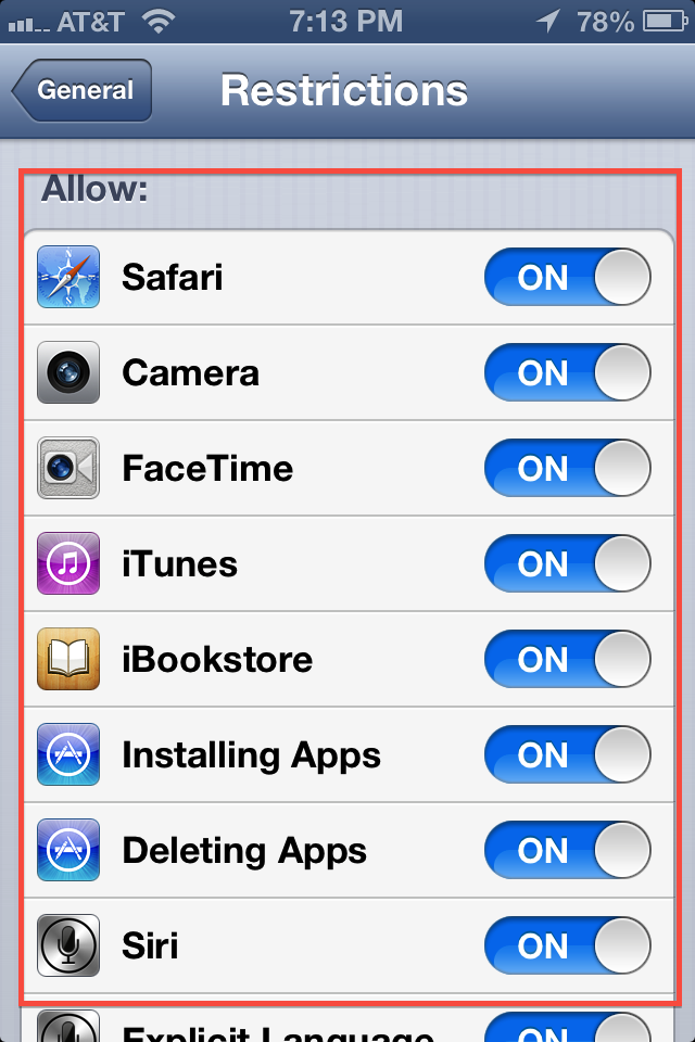 2. Youtube app can only be restricted on iOS 5 or higher.