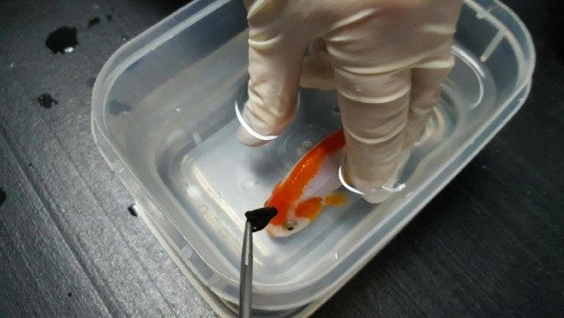 The goldfish was called “Conquer”, he had been examined by the Brisbane Bird and Exotic veterinary Service center and came to know that a single black pebble was lodged in the back of his throat.