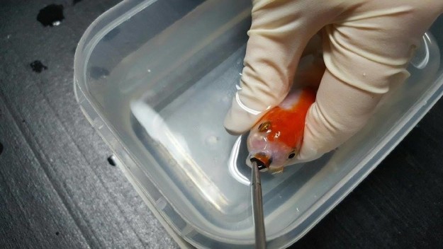 Vets from Australia said that a 21year old woman came with a fish problem after her goldfish accidentally swallowed pebble.