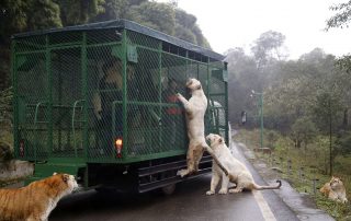 Zoo is the place where animals are caged and humans are outside! A lot of these animals are neglected and their natural habitat is taken away from them. But this zoo in China decided to do something very different and unreal. Here the animals and humans have switched places! Lehe Ledu Wildlife Zoo in Chongqing, China is giving people the chance to get up close with some of the world's most fierce animals. A cage, filled with people is driven around the park and everyone can enjoy watching the animals in their own