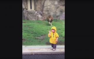 This 2-year old boy in yellow jacket did not have any idea that visiting a zoo may put him in life endangered situation, thanks to the strong glass cage that everything is safe. Enclosed in the trap for so long did not make this feline loose its animal instincts, as soon as this little kid turned his back on him, he tried to paw him and charged him with great force. If it was not for the strength of glass cage the result would have been catastrophic. The boy visited