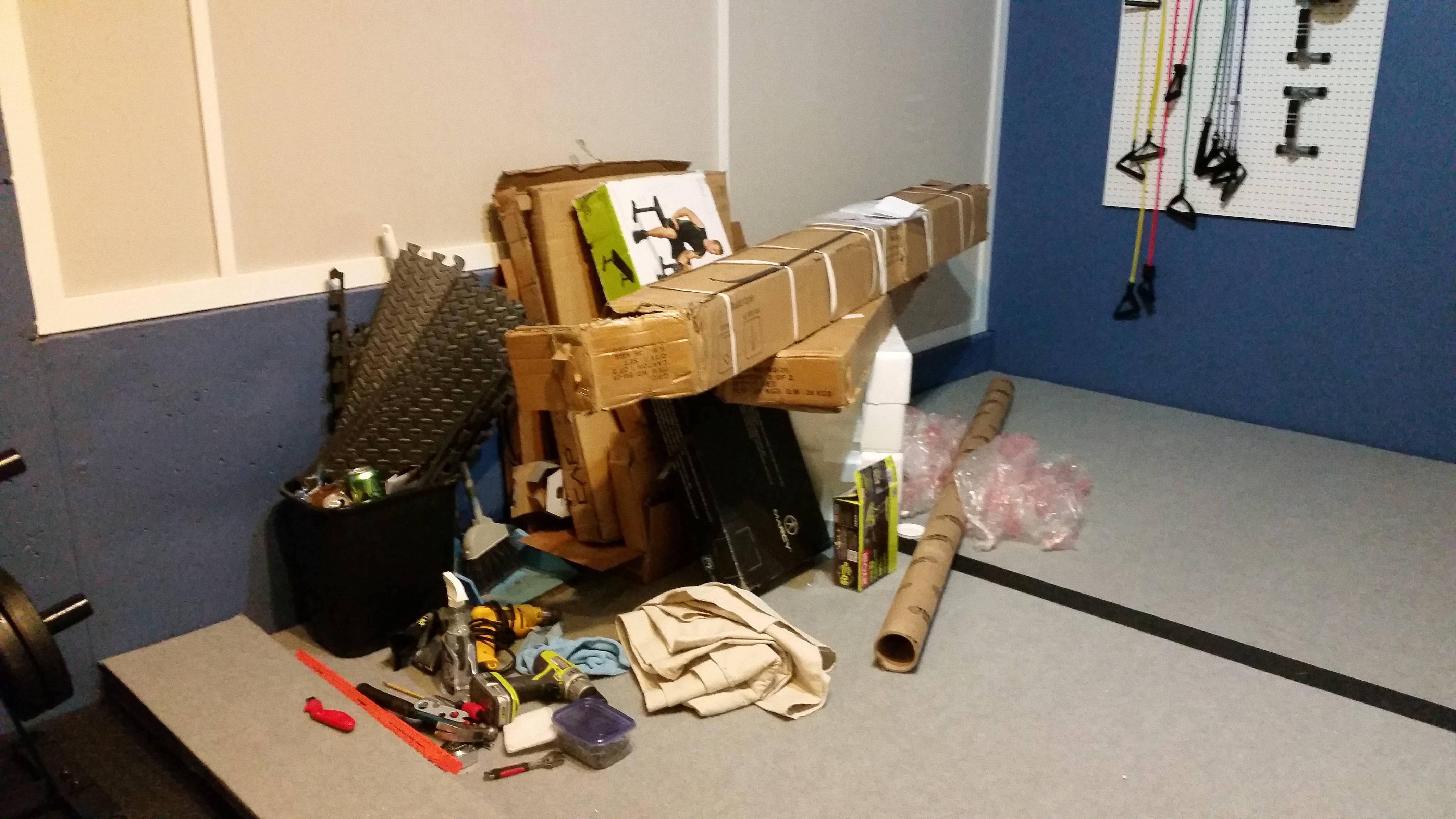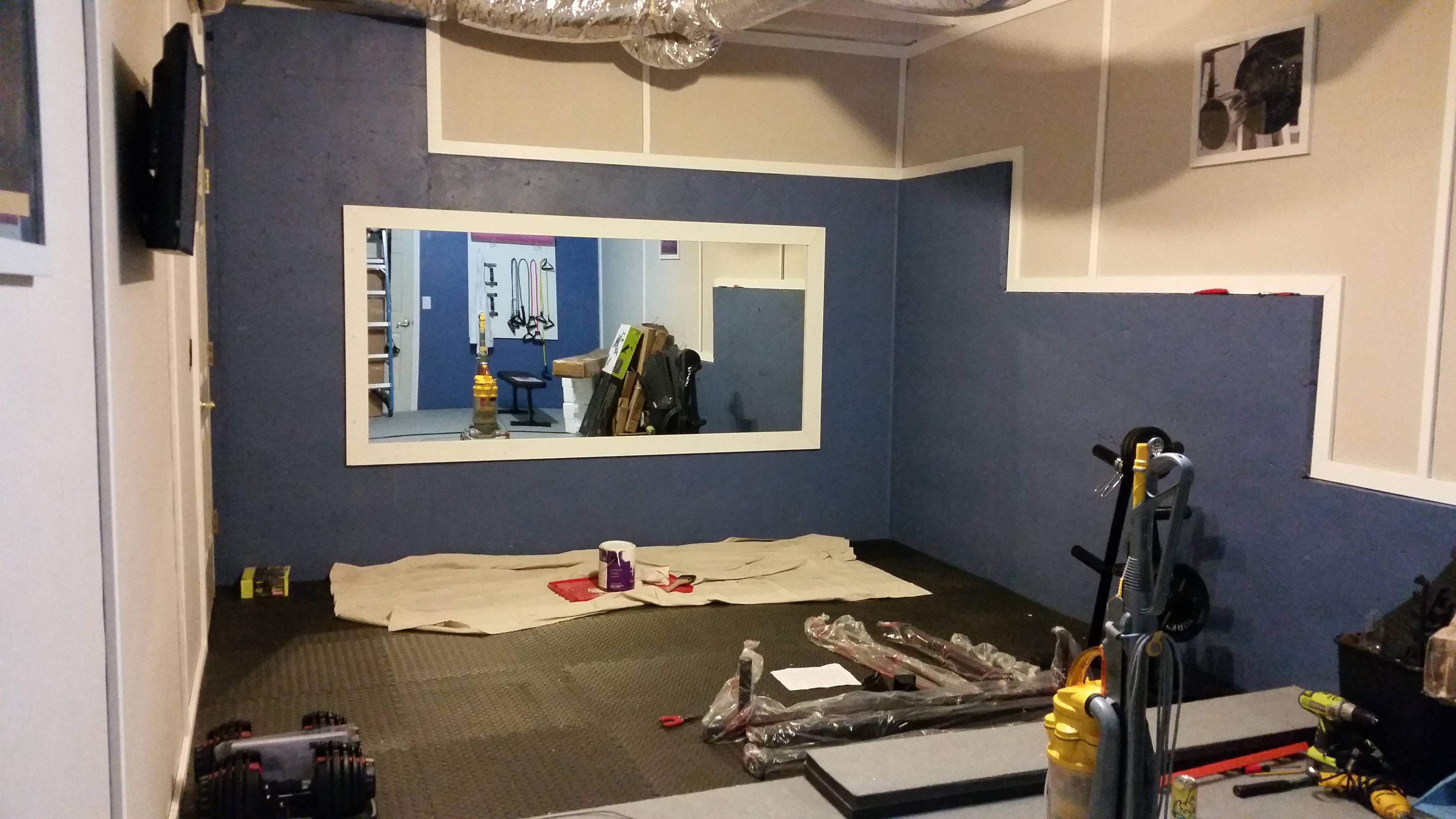 After finishing it her husband added punch bag, a rowing machine, a whole bunch more weights, a stereo, etc. Seems like her husband was very happy at the surprise gift!