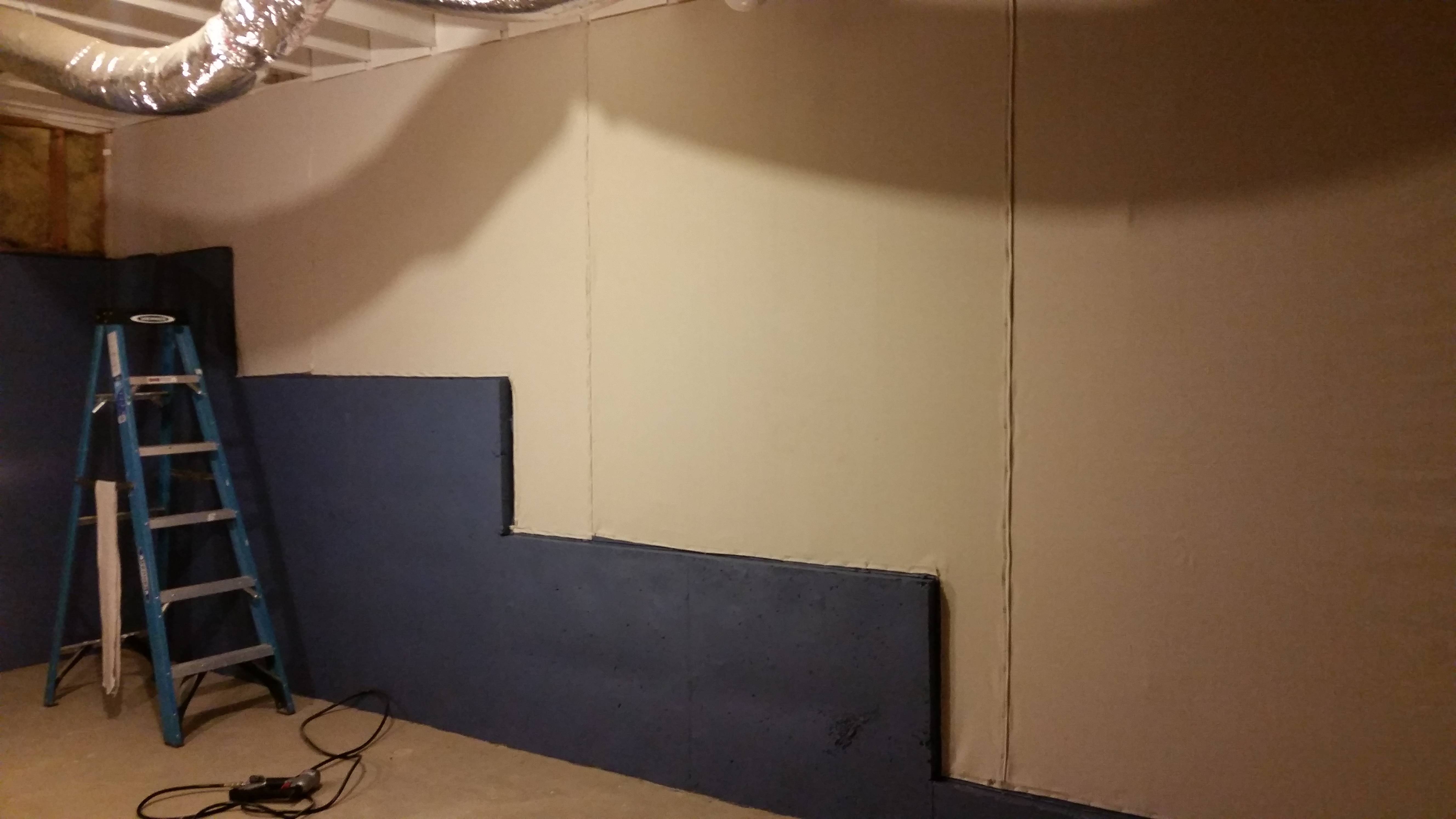 So her first challenge was to do something to the unfinished walls and uneven seam to make it look even.